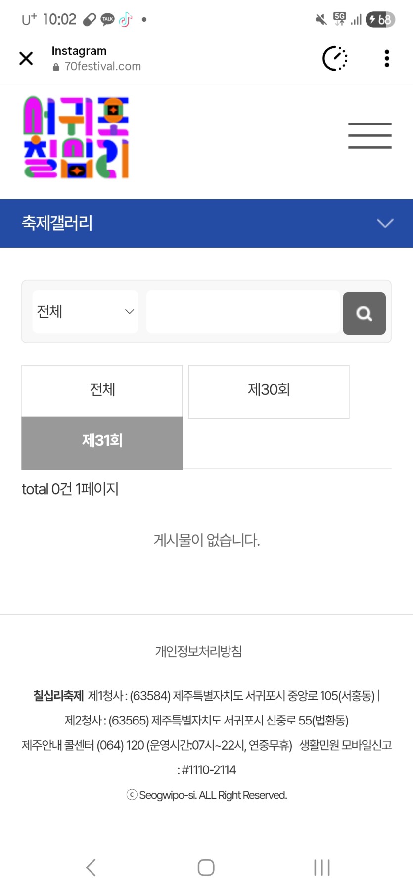 제31회 서귀포 칠십리 축제 사진 업로드 본문 제31회 서귀포 칠십리 축제 현장 포토는 언제 업데이트되나요? 목록 글쓰기 게시판 리스트 옵션 수정 삭제 이전글글로벌 항공 생태계에서 헬리콥터 MRO의 중요성 증가 다음글가요제 신청